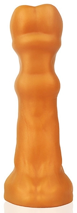 Gode en forme de sabot de cheval, avec une fente profonde à son extrémité. Protubérance juste sous le sabot. Dimensions : Longueur insérable de 19 cm. Largeur de 6 cm. En silicone.