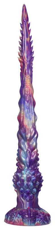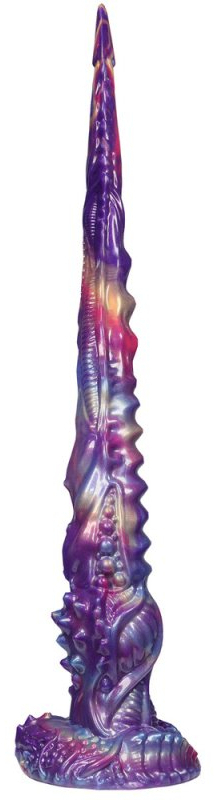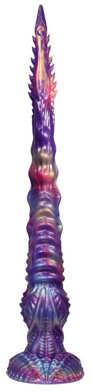 Gode long en forme de queue, avec de nombreux reliefs.Longueur insérable de 52 cm et largeur de 1.7 à 7.2 cm.En silicone, avec base ventouse.