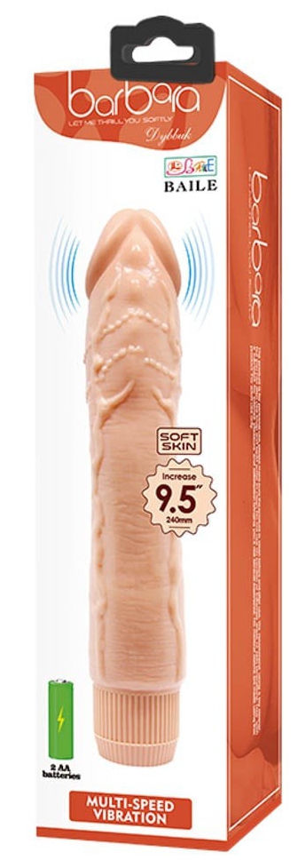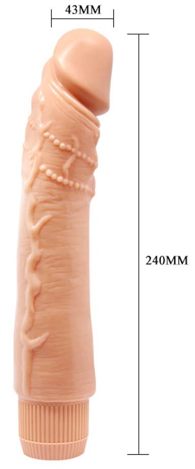 Le gode vibrant Baile Dybbuk est un sextoy conçu avec une forme réaliste et une surface comportant un relief excitant.Il mesure 20cm de longueur insérable et 4cm de largeur. La vitesse des vibrations peut être modulée