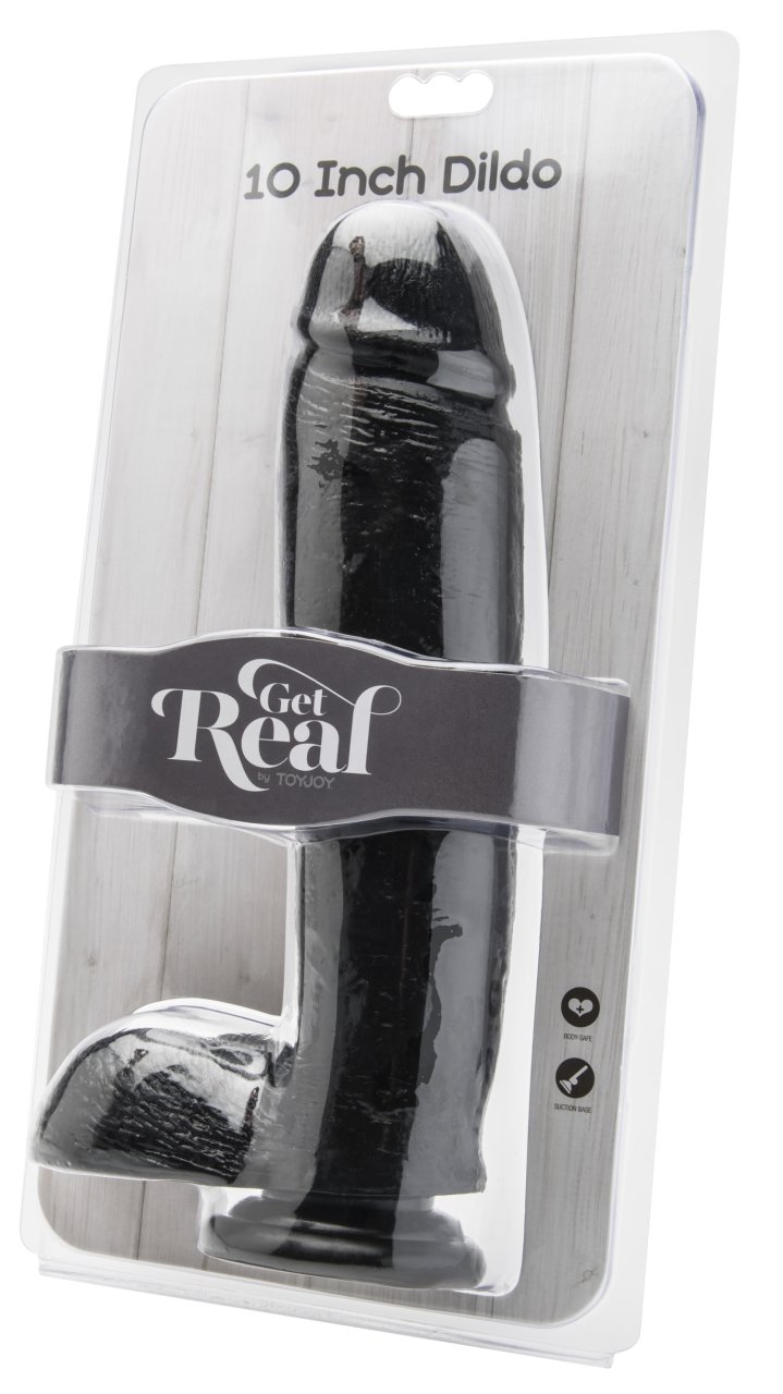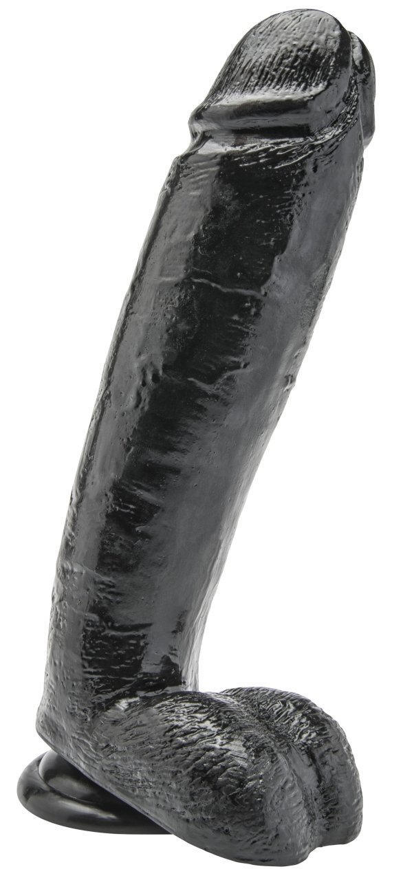 Gode noir avec une forme réaliste.Longueur insérable de 21 cm.Largeur maximale de 6 cm. Avec bourses et base ventouse. En PVC
