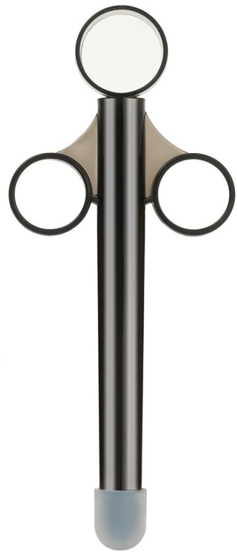 Injecteur pour mettre le lubrifiant plus facilement à l'intérieur de l'orifice. La longueur insérable est de 10 cm. La largeur est de 1.3 cm.Avec une contenance de 10 ml. En plastique ABS. Dimensions totales : 17 x 7 cm.