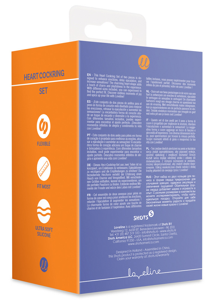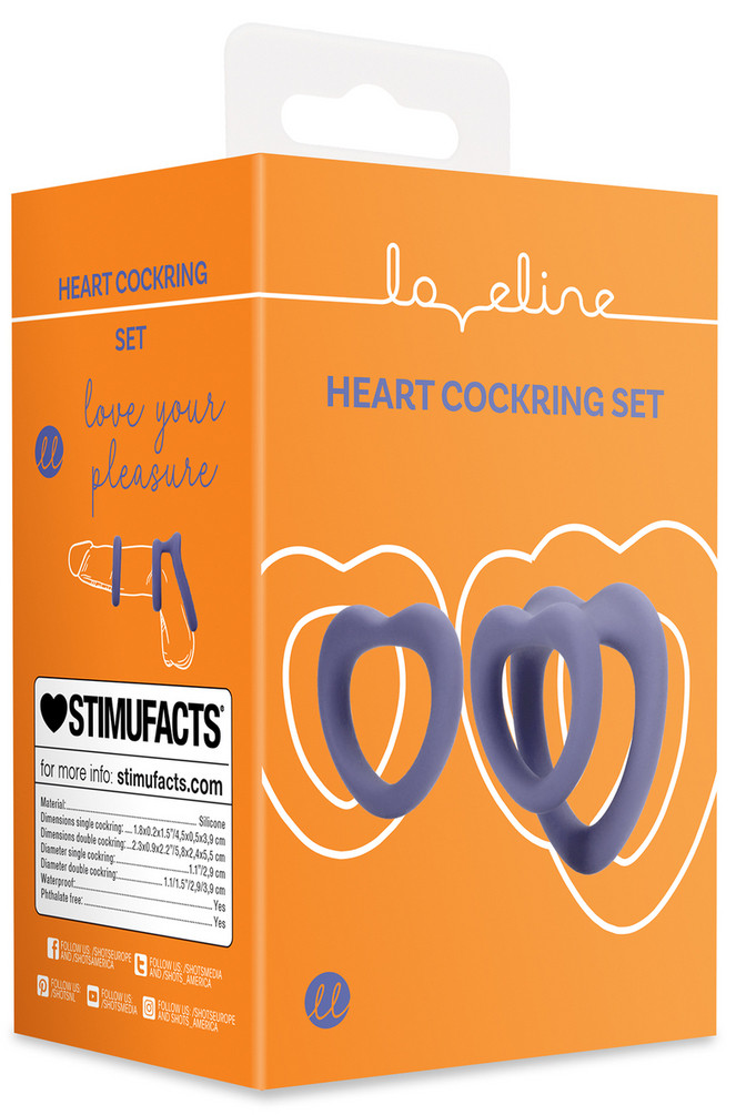2 cockrings avec diamètre de 35 mm (45 mm pour le plus grand)En silicone, en forme de coeur.