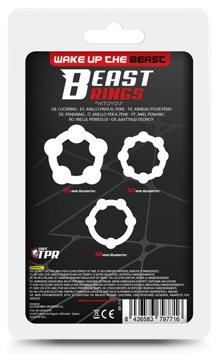 Ce lot est composé de 3 mini cockring souples idéals pour serrer le pénis et le rendre plus sensible.Chaque anneau a un diamètre, des billes à la surface et une épaisseur fine. Diamètres de 30mm, 32mm et 35mm. Fabriqués en TPR flexible