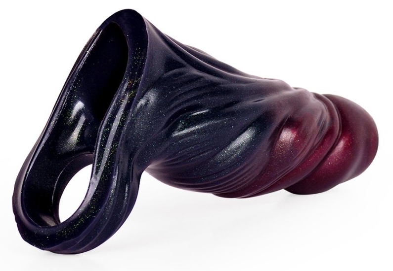 Manchon avec une forme insolite et une couleur violet sombre.Longueur de 13.5 cm. Largeur de 5.5 cm. Diamètre intérieur de 28 mm.Pour donner du volume au sexe et du fun.En silicone souple.