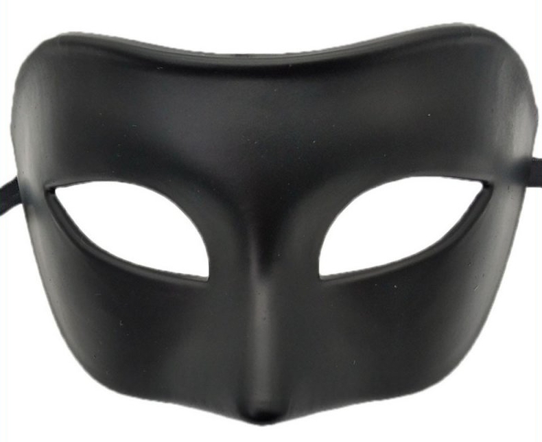 Masque noir avec une belle forme en amande.Maintien avec un ruban satiné. En plastique ABS Dimensions : 18 x 9cm