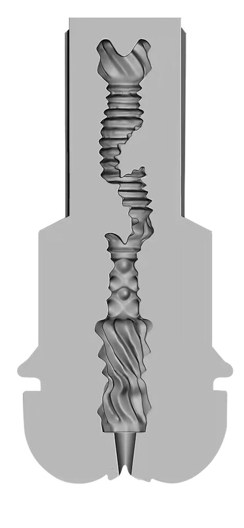Masturbateur avec la matière rose et souple.L'entrée est en forme de vulve pour simuler une pénétration vaginale. Surface intérieure avec des reliefs nervurés et striés.Dimensions insérables d'environ 17 x 4 cm. Matière TPE souple.Coque rigide.
