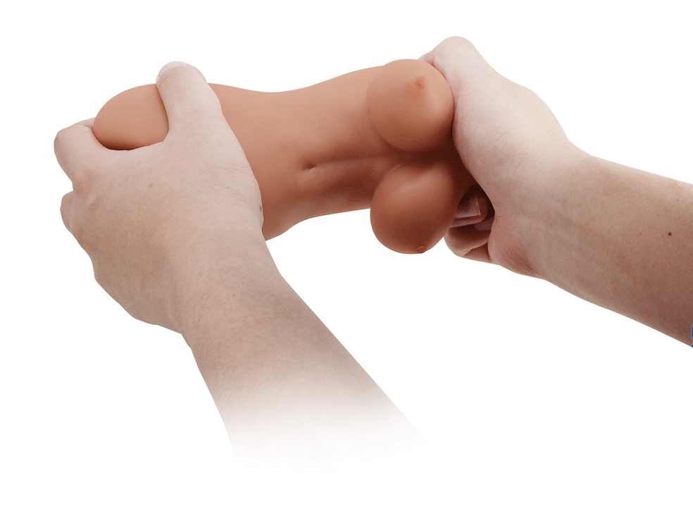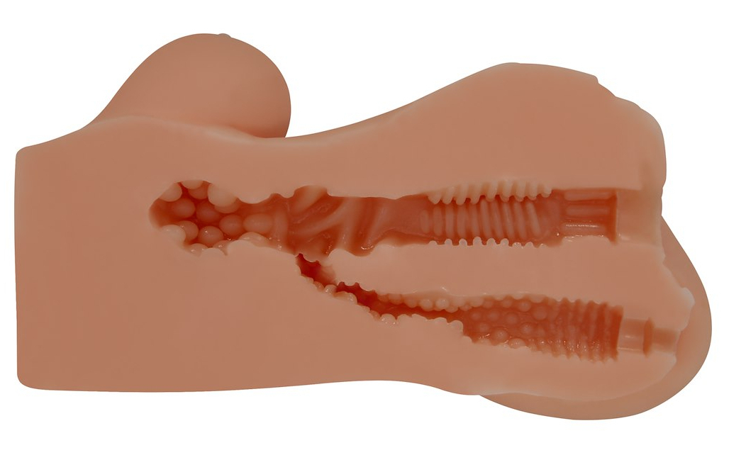 Masturbateur double entrée, avec reliefs différents. Côté anus, longueur insérable de 7 cm Côté vulve, longueur insérable de 10 cm En TPR marron.