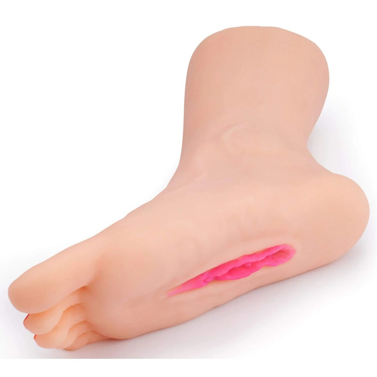 Masturbateur pied, avec entrée vulve. Longueur insérable 10 cm et poids 865 grammes. En TPE.