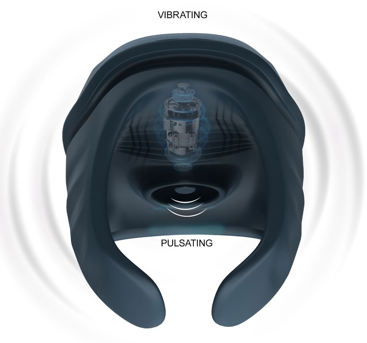 Masturbateur conçu avec 2 moteurs, 3 vitesses de vibrations et 7 modes de pulsation. Matière silicone souple. Recharge en USB