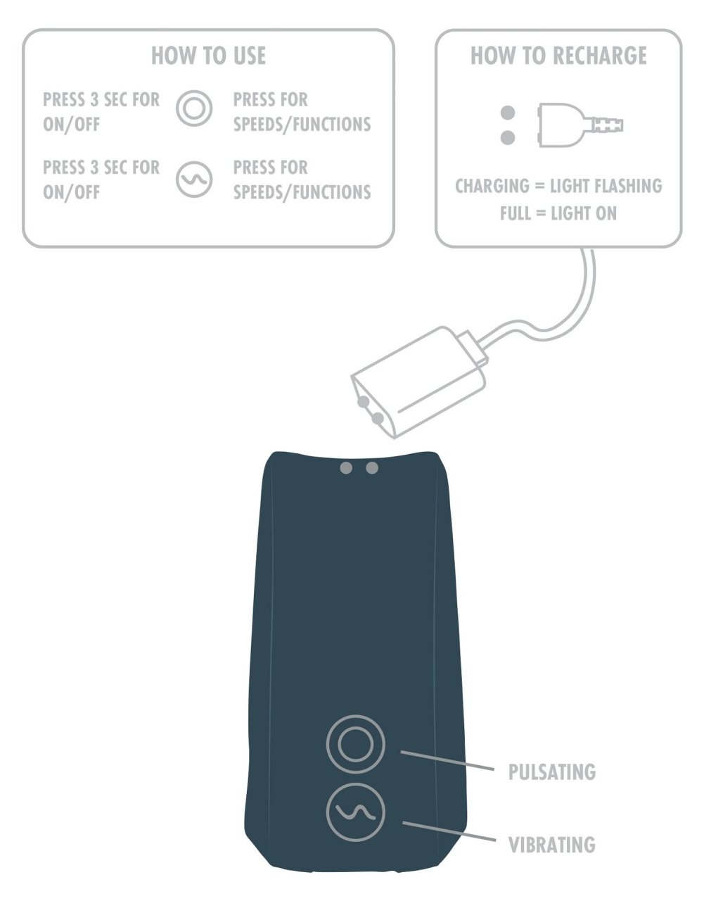 Caractéristiques : Matière silicone, étanche à l'eau (pas d'immersion) Batterie Lithium - Recharge en USB Dimensions 8 x 8 x 4.5 cm 3 Vitesses 7 Modes de pulsation. Précautions d'utilisation : le nettoyer avant et après chaque utilisation utiliser uniquement un lubrifiant à base d'eau si nécessaire conserver dans un endroit propre, sec et à l'abri de la chaleur, sans contact avec un autre objet.