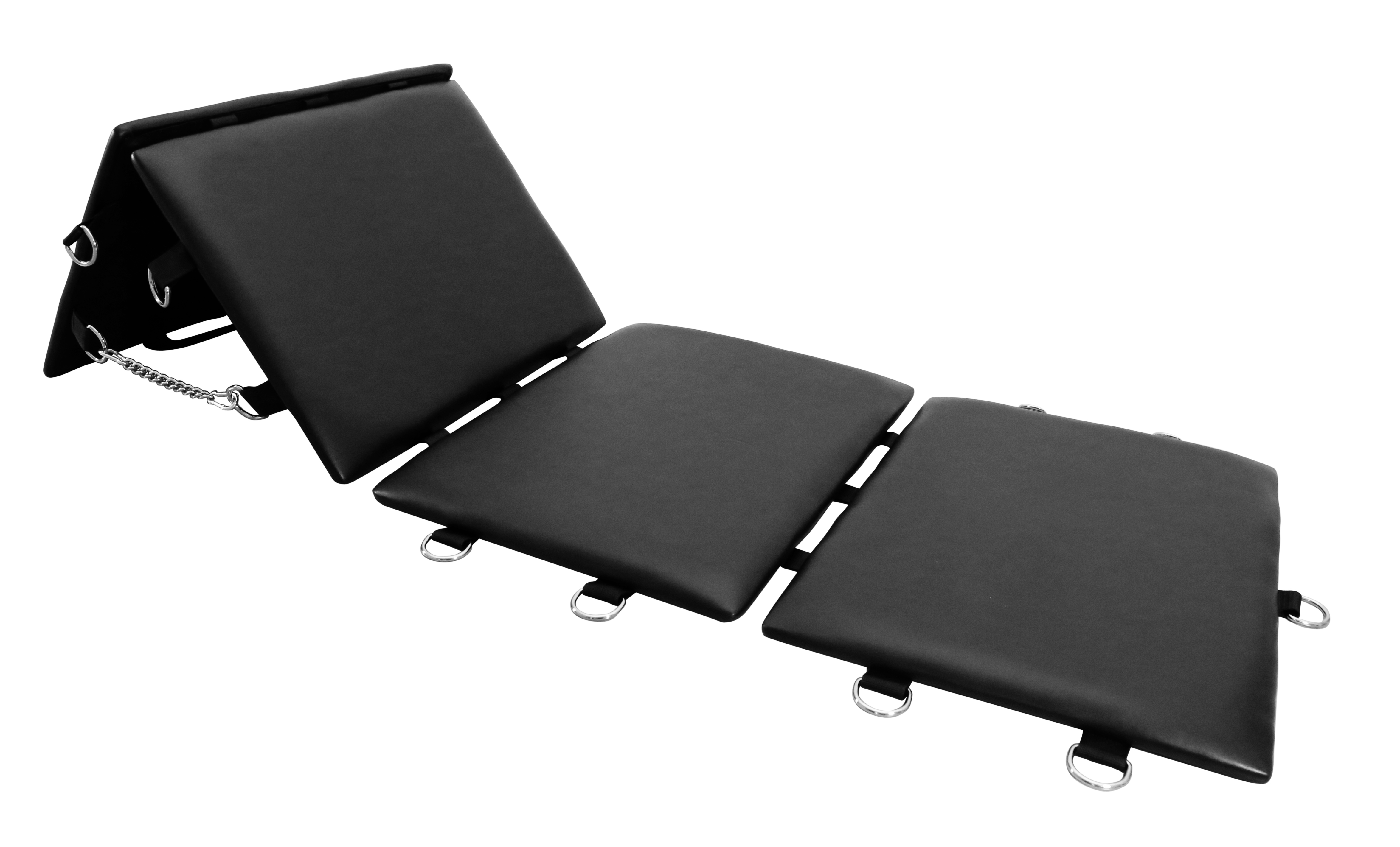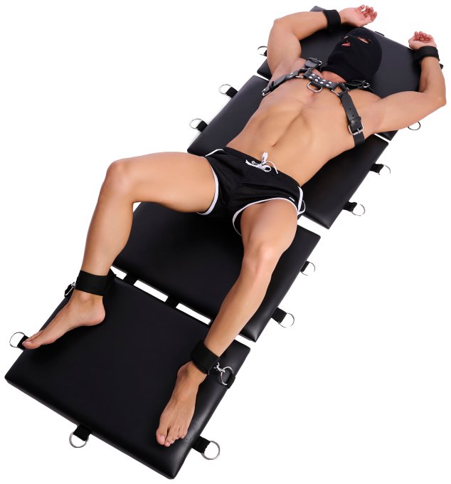 Cet accessoire BDSM est un matelas transportable conçu avec 4 volets rembourrés de 60 x 45cm. Il est idéal pour monter sa playroom facilement et facilite les déplacements.Avec 4 anneaux en métal par volet et 12 accessoires.Possibilité de faire un dossier
