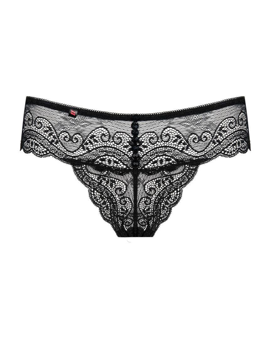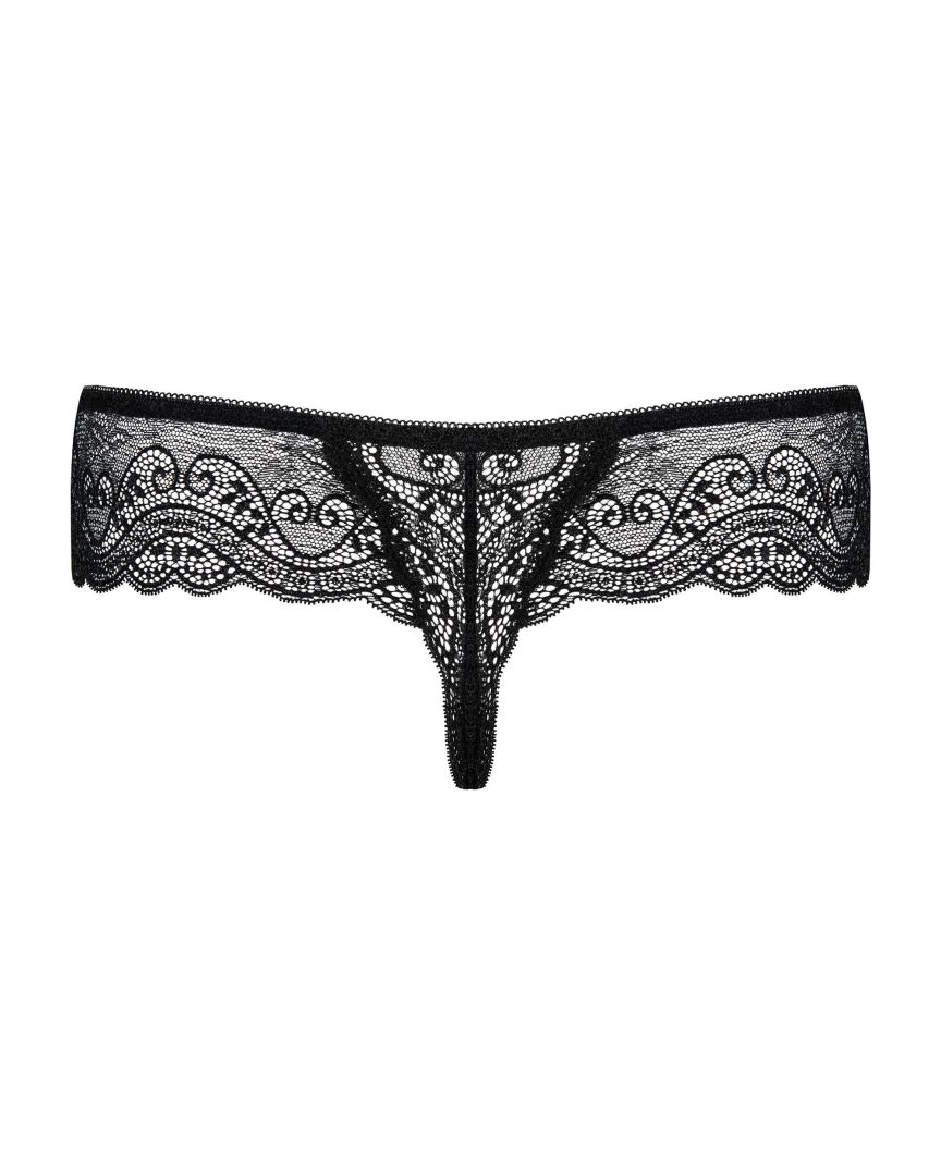 String sexy de fine dentelle de la marque de lingerie Obsessive. Un string noir particuli�rement �l�gant d'une dentelle aux motifs glamour qui forme une large ceinture. Ce string coquin est compos� de 90% polyamide 10% elasthane. Consultez les mod�les de la�collection Miamor