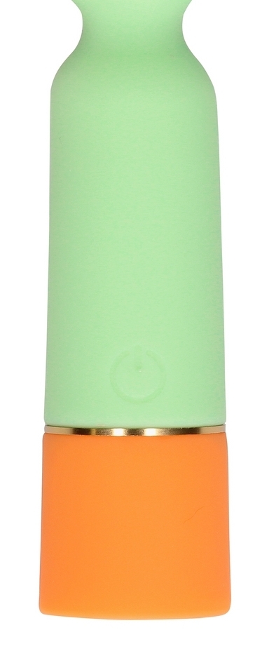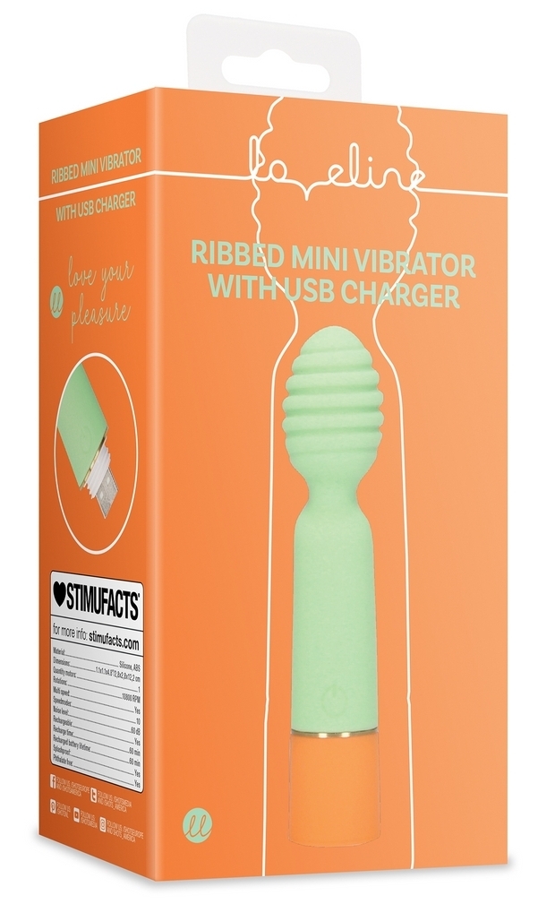 Mini-vibro avec prise USB incluse dans la partie orange dévissable. Embout nervuré pour plus de sensations. 10 modes de vibrations. Résistant aux éclaboussures Longueur insérable de 8.5 cm. Largeur maximale de 3 cm. En silicone