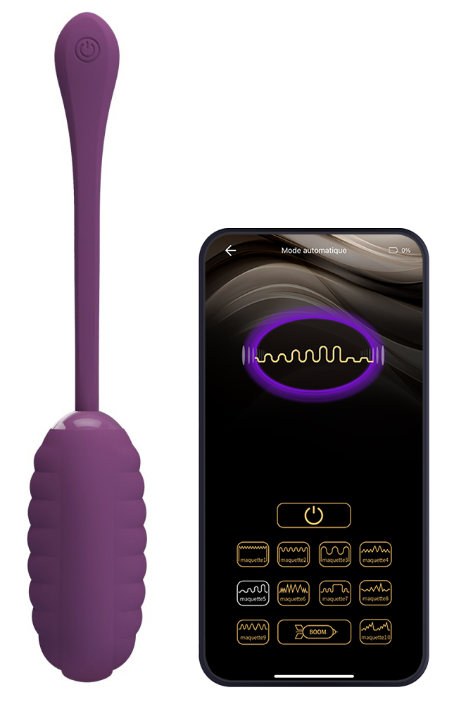 Œuf vibrant sans fil connecté 12 modes de vibration avec le bouton Multiples possibilités en version connectée Rechargeable par câble USB Texture lisse et surface ondulée. Longueur insérable de 8 cm et largeur maximale de 3.5 cm. En silicone souple