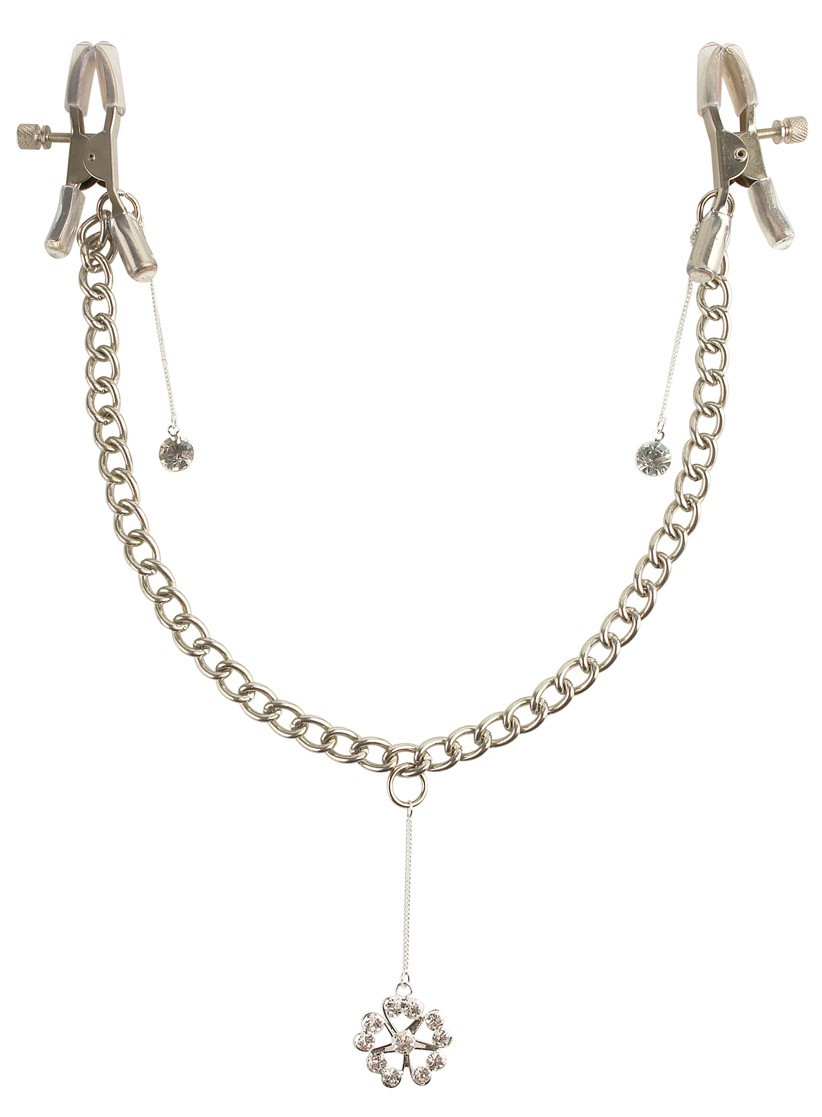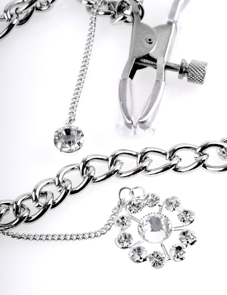 Ces pinces à seins de la marque Fetish Fantasy sont idéales pour stimuler les tétons et prendre du plaisir.Elles se composent de: les pinces qui s'ajustent avec vis des bijoux strass qui pendent sur chacune des pinces une chaîne en métal qui relie les de