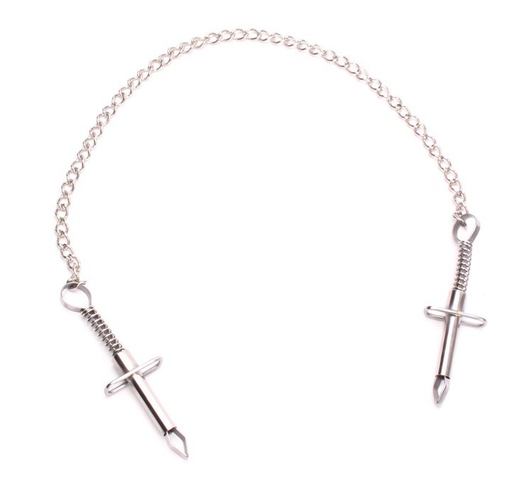 Ces pinces pour les tétons sont composées de: la partie pince de 8cm de long avec une ouverture facile (en pince de crabe) la chaîne métallique de 30cm. Cet accessoire stimule les tétons et donne des sensations intenses.Elles sont fabriquées en métal