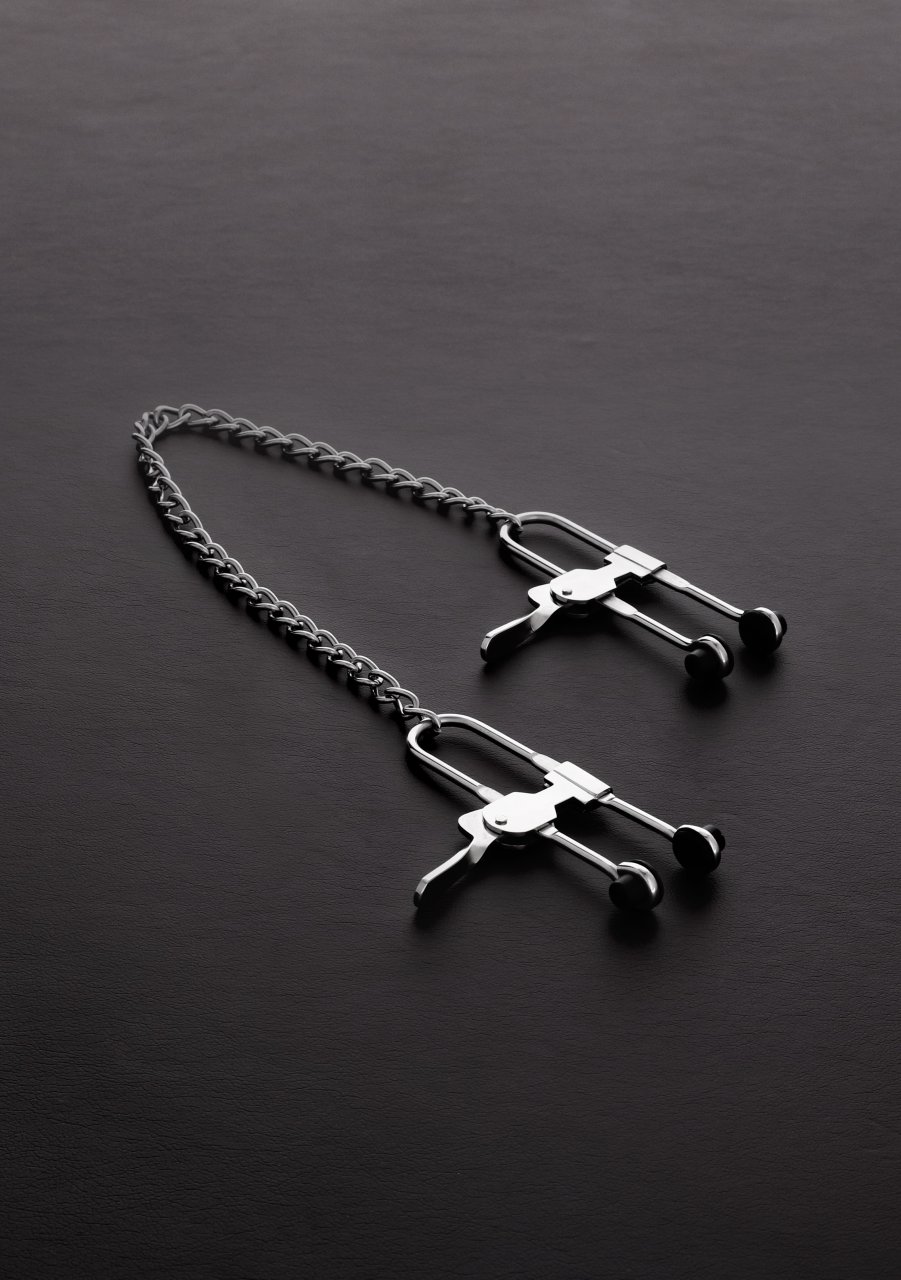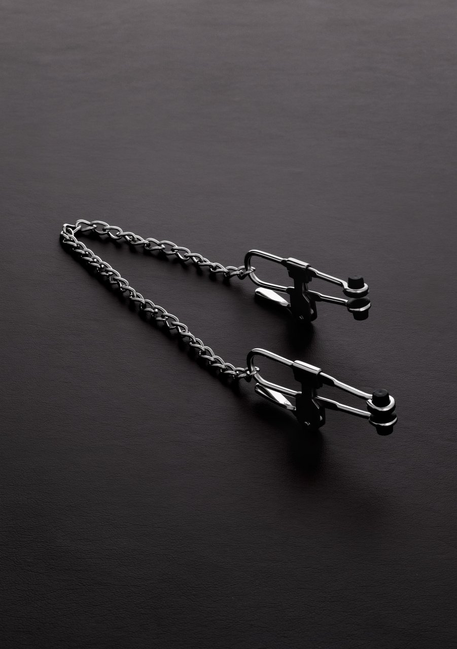 Ces pinces pour les tétons appelées Tit Lock sont des accessoires SM qui permettent de stimuler les tétons. Il sont composés de deux parties qui pincent et d'un système de serrage qui peut être modulé en fonction de l'envie. Les deux pinces sont reliées a