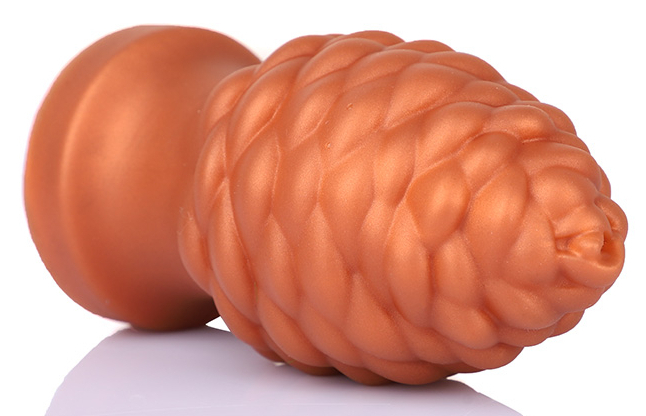 Une forme originale et des dimensions importantes.Il a une longueur insérable de 14.5 cm et une largeur maximale de 8 cm.Avec une base ventouse.En silicone.