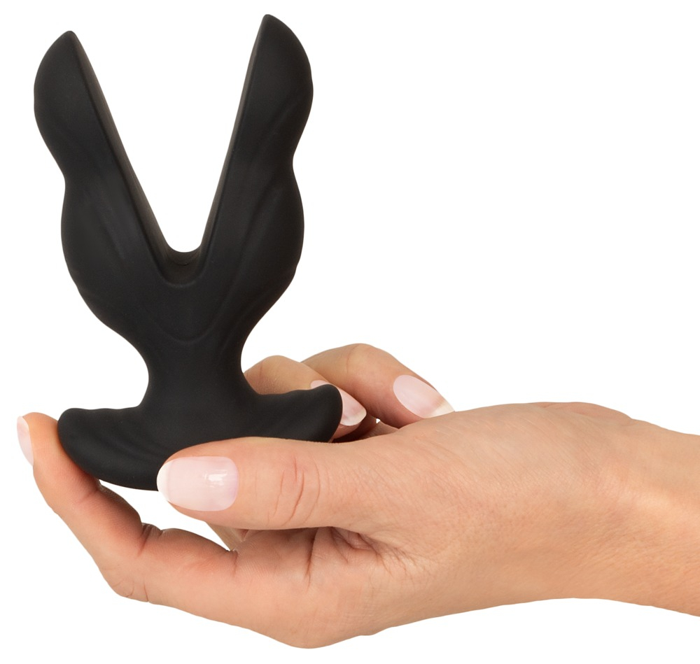 Plug avec une forme Ancre dont la largeur maximale est de 6.5 cm.Longueur insérable de 9 cm.Avec 8 Vibrations et 8 modes Électro. Avec la télécommande.En silicone.Recharge USB.