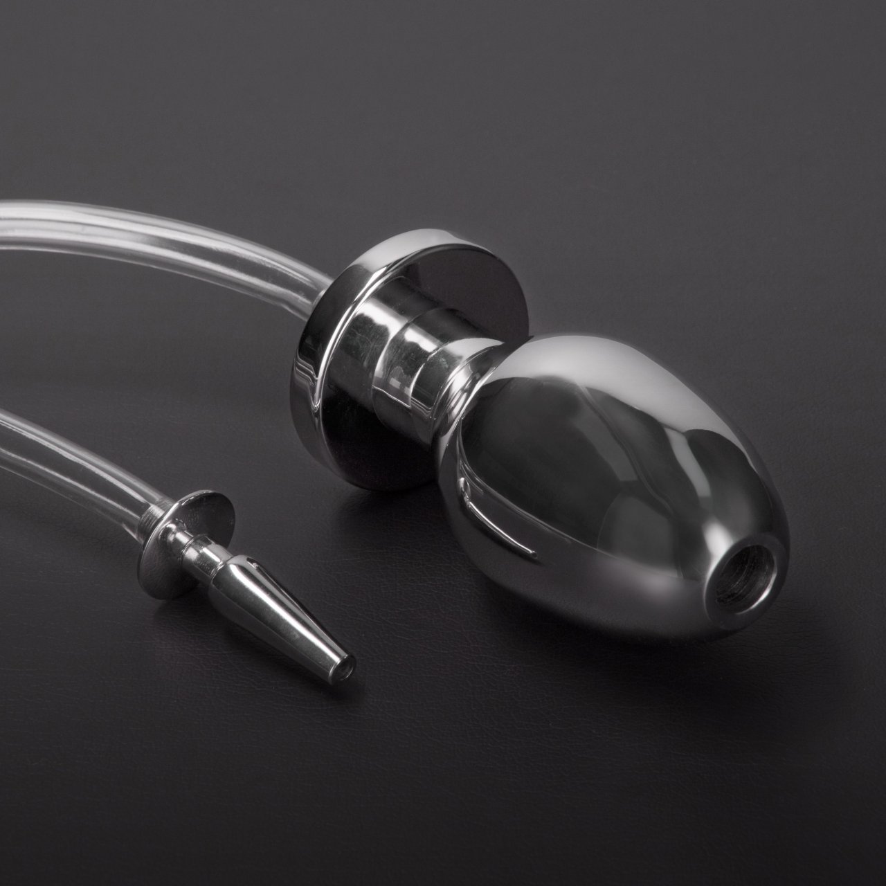 Cet accessoire de jeu Uro est un sextoy composé de: un plug de 7cm de longueur insérable et de 4cm de large un plug d'urètre de 3.5cm de longueur et de 9mm de large. le tuyau de 90cm qui amène l'urine de la vessie jusqu'au cul. Accessoire réalisé en aci