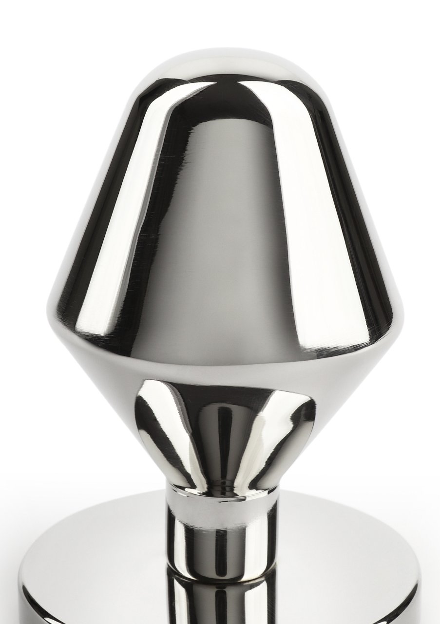 Plug avec une forme idéale pour ressentir des plaisirs agréables.Il a une longueur insérable de 5.5 cm.La largeur maximale est de 3.8 cm. La partie rétractée mesure 1 cm de largeur.Avec une base plate. En acier inox.