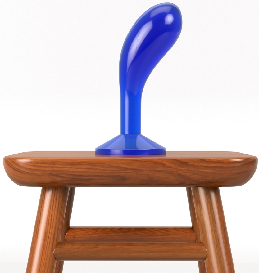 Plug bleu avec une forme incurvée et une surface lisse.La longueur insérable est de 13 cm. La largeur maximale est de 4.3 cm. En TPE