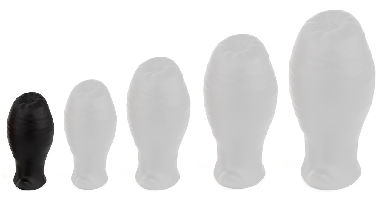 Plug oeuf, plat à son extrémité. Longueur insérable de 6 cm et largeur de 2 à 3.5 cm. En silicone, avec base plate.