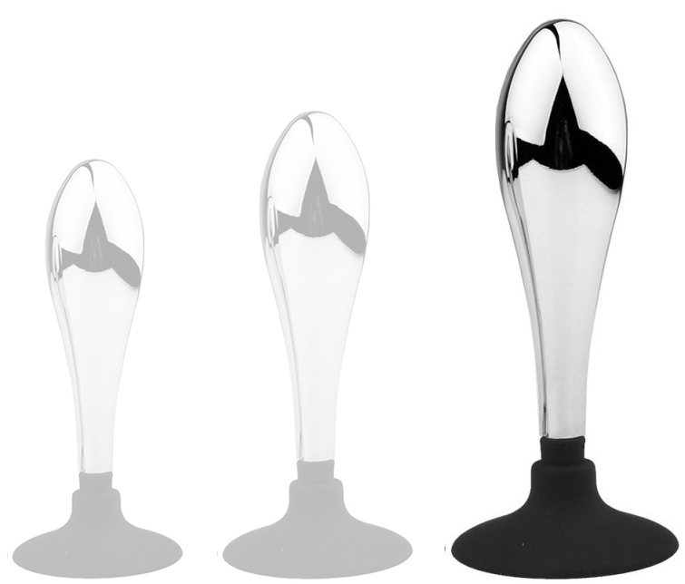 Accessoire conçu avec une forme arrondie et une surface lisse.La longueur insérable est de 9.5 cm. La largeur maximale est de 2.8 cm.Avec une base ventouse en silicone. Il est fabriqué en métal.