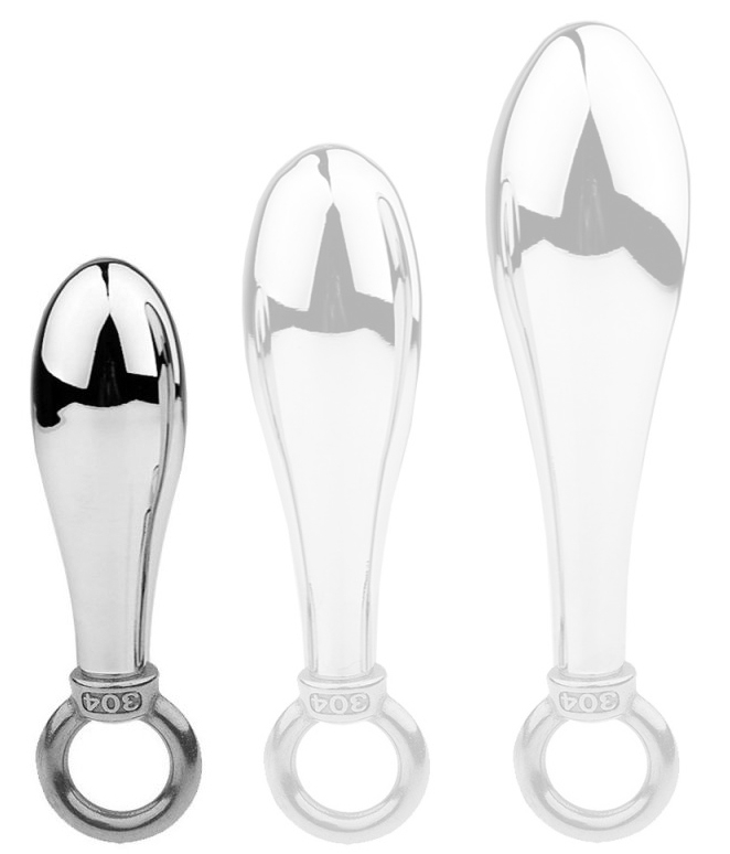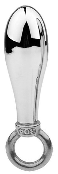Plug avec des dimensions réduites : 6 cm de longueur insérable et 2.2 cm de largeur maximale.Surface lisse et anneau amovible. En acier inox.