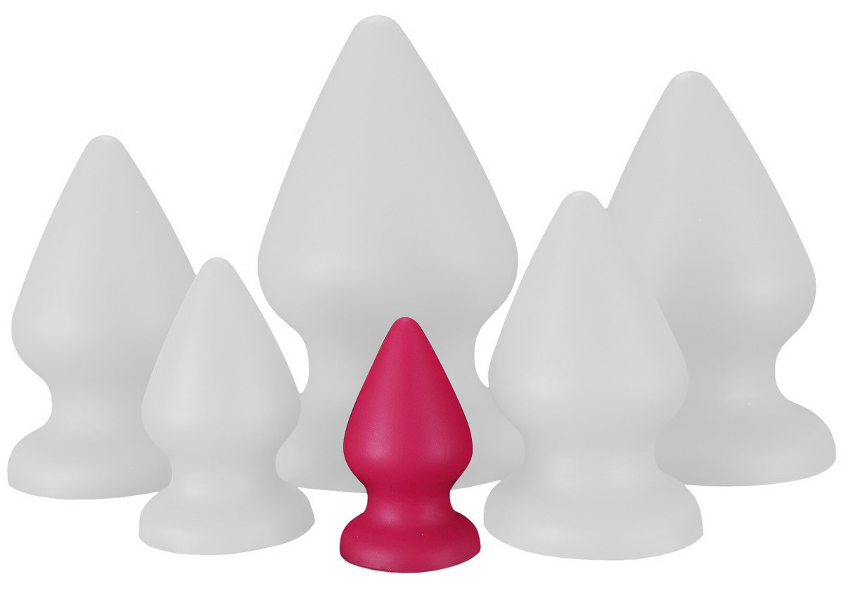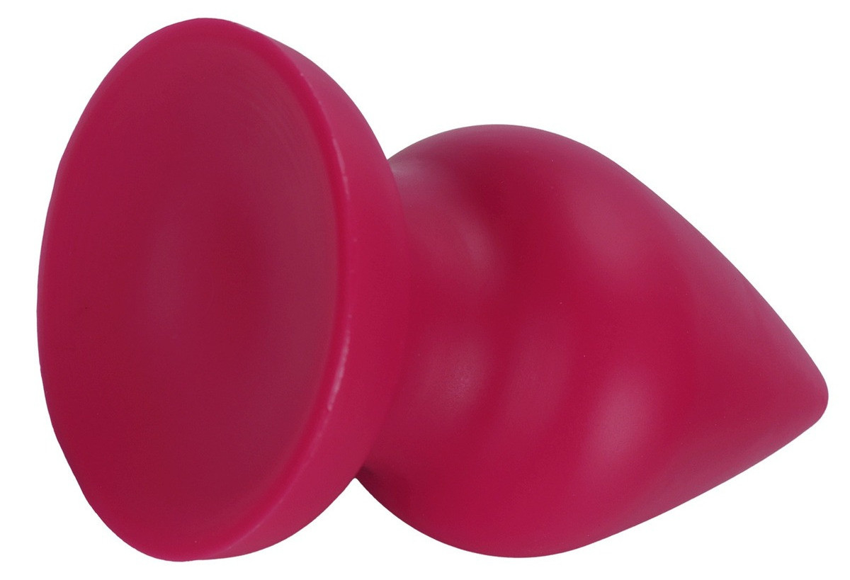 Plug conique, à la surface lisse. Longueur insérable de 6 cm et largeur de 2.5 à 4 cm. En silicone, avec base ventouse.