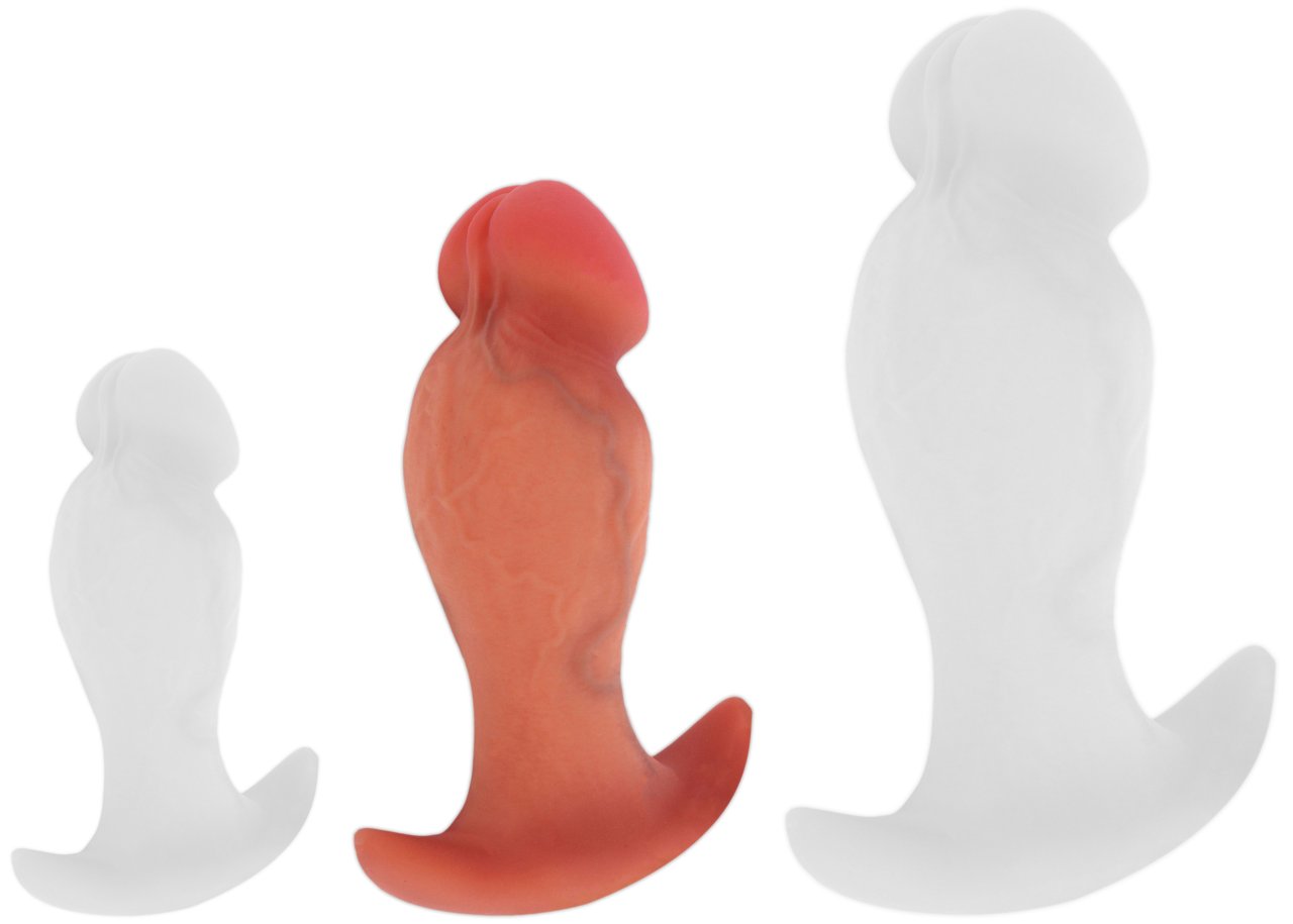 Longueur insérable de 11.5 cm et largeur maximale de 4 cm.Forme insolite comme un vrai pénis mais avec des éléments plus originaux.Base incurvée.En silicone.
