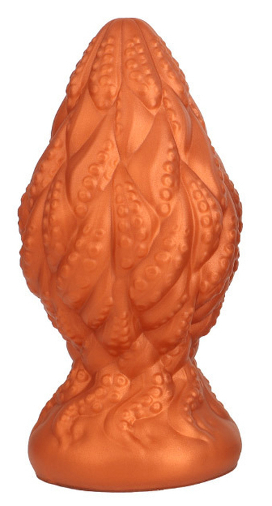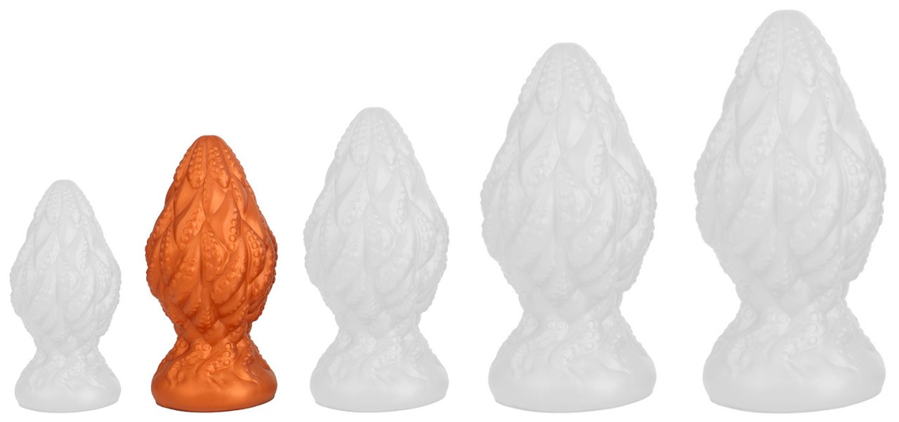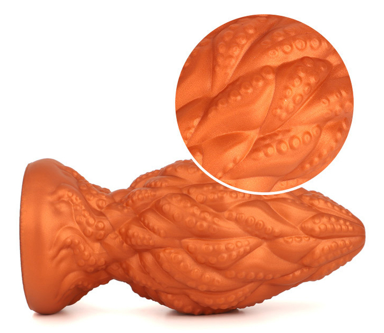 Plug avec de multiples reliefs.Longueur insérable de 9.5 cm et largeur de 3 à 5.2 cm.En silicone, avec base ventouse
