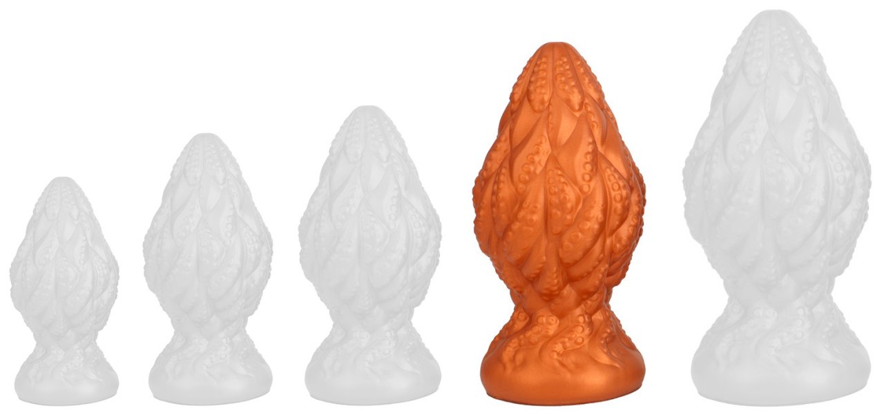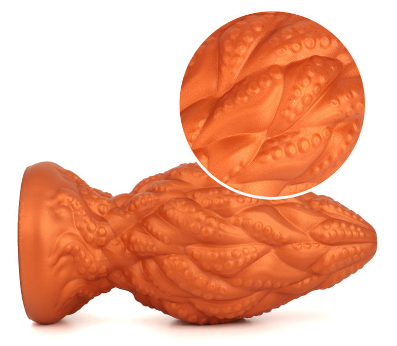 Plug conique, à la surface texturée.Longueur insérable de 12 cm et largeur de 4 à 7.2 cm.En silicone, avec base ventouse
