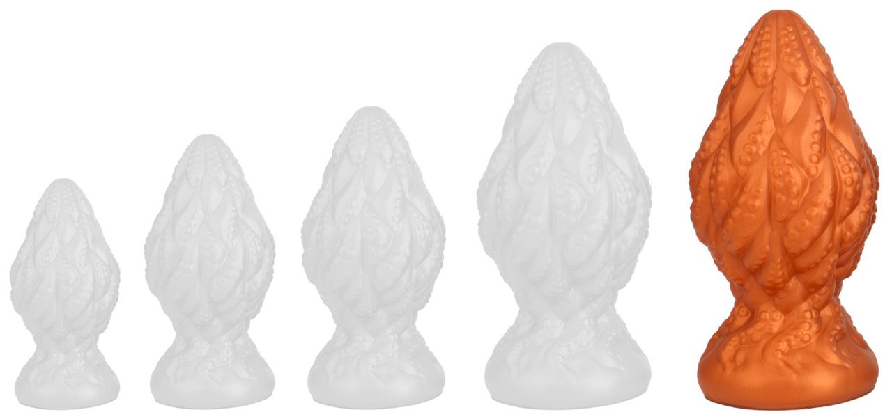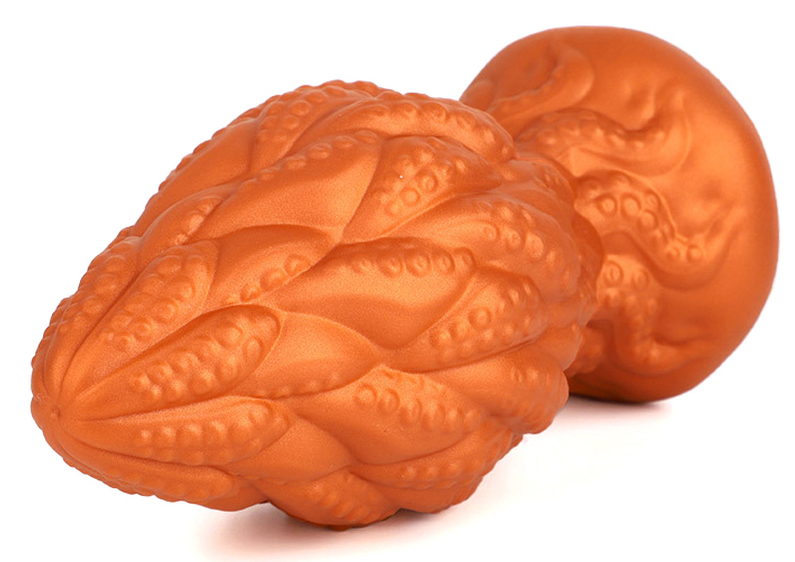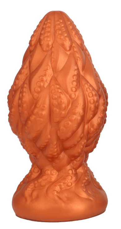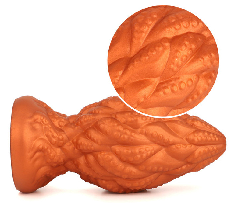 Plug souple, à la surface texturée.Longueur insérable de 14 cm et largeur de 4.2 à 7.5 cm.En silicone, avec base ventouse
