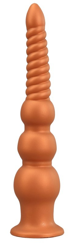 Plug avec différents reliefs, d'une longueur insérable de 31 cm.Largeur de 2.5 à 6.5 cmEn silicone avec base ventouse.