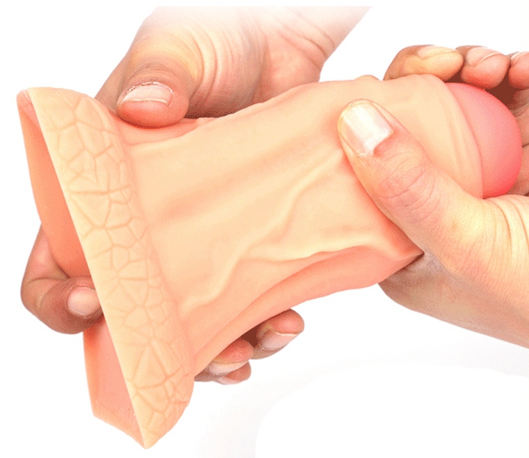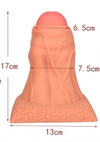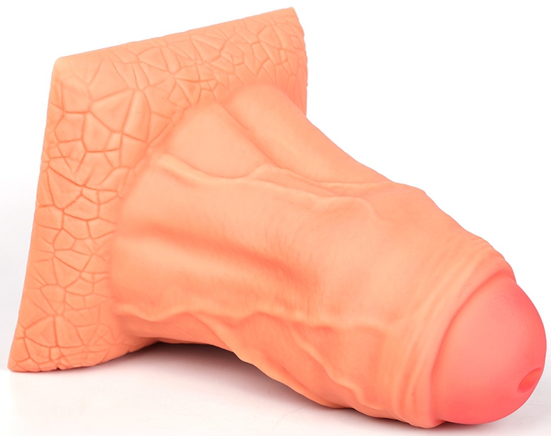Le plug Overdick M est un sextoy composé d'une forme de pénis avec le gland partiellement recouvert du prépuce. La surface est veinée.La longueur insérable est de 14cm.Sa largeur va de 5 à 9cm. La base est plate et peut servir de ventouse. En silicone sou