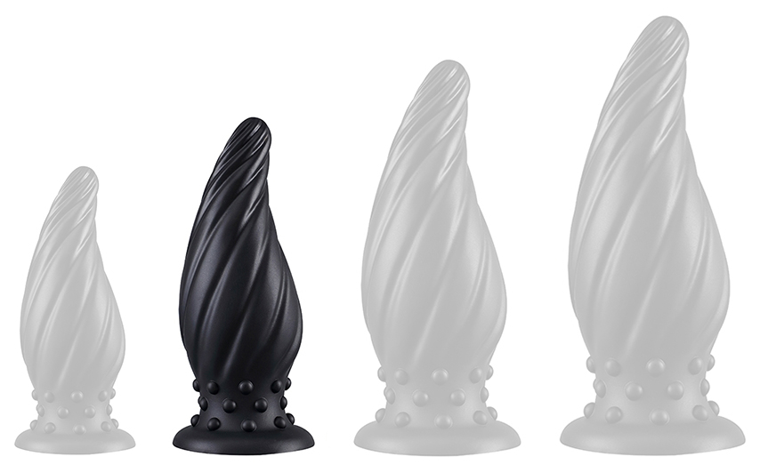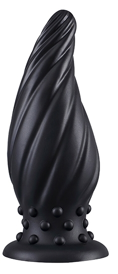 Plug anal, d'une forme torsadée, avec relief. Longueur insérable de 15 cm et largeur de 3 à 6.2 cm. En silicone, avec base ventouse.