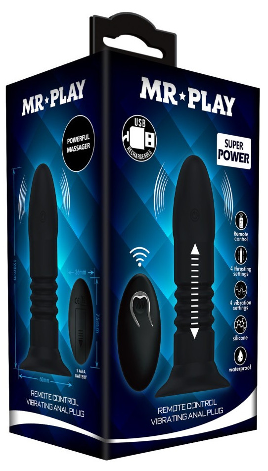 Caractéristiques :Dimensions totales 14 x 6 x 6 cmLongueur insérable de 12 à 13 cmLargeur 3.5 cm4 modes de vibrations4 modes de va-et-vientBatterie Lithium - Recharge USBTélécommande à piles (1 x AAA non fournie).Précautions d'utilisation :le nettoyer avant et après chaque utilisationl'utiliser uniquement avec un lubrifiant à base d'eaule conserver dans un endroit propre, sec et à l'abri de la chaleur, sans contact avec un autre objet.