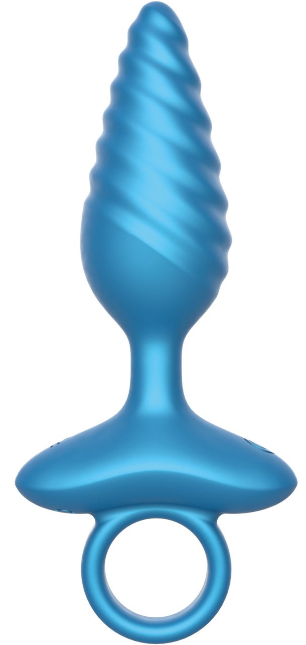Plug vibrant de forme conique, avec surface texturée. Longueur insérable de 10 cm et largeur de 1 à 3.5 cm. 10 modes de vibrations. En silicone, avec base large.