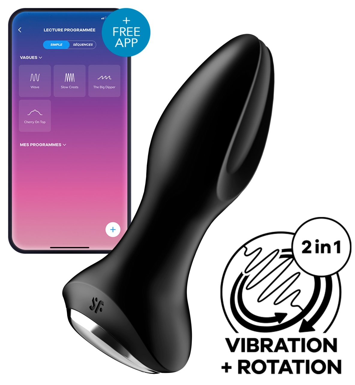 Plug vibrant connecté Rotator 2 Satisfyer 10 x 4cm Noir
