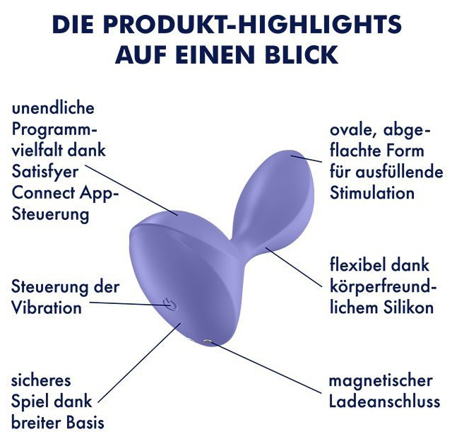 Ce plug vibrant de la marque Satisfyer peut s'utiliser avec ou sans l'application. Il possède des vibrations pré-programmées et d'autres beaucoup plus nombreuses avec l'application.La longueur insérable est d'environ 7cm. La largeur maximale est de 3.5cm.