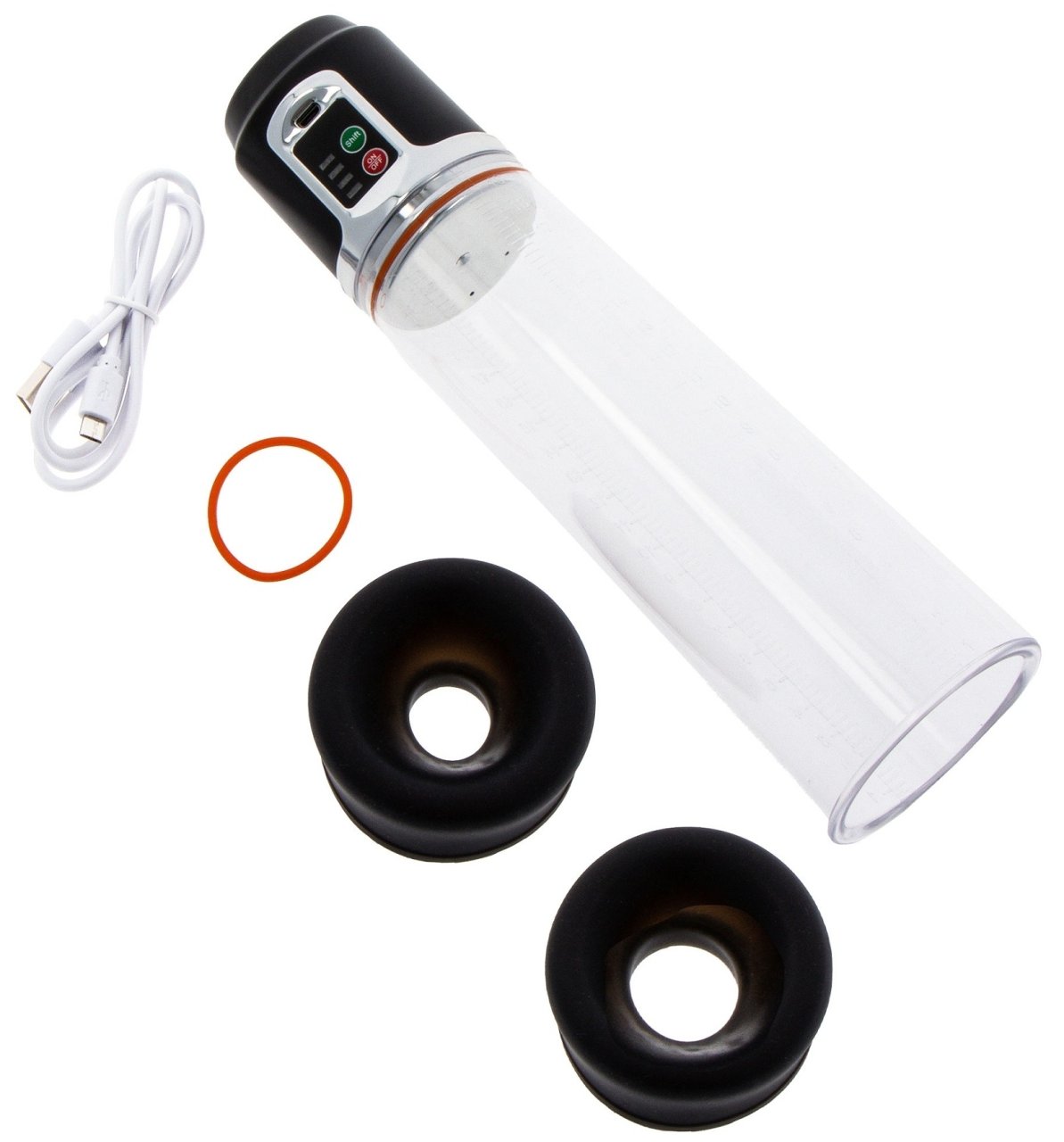 Pompe à pénis automatique de 18.5 cm de longueur et de 5.8 cm de largeur intérieure. Elle sert à créer un vide d'air afin d'allonger votre pénis. 2 manchons en PVC : diamètre 1 : 25 mm diamètre 2 : 33 mm Cylindre en plastique ABS, gradué en centimètr