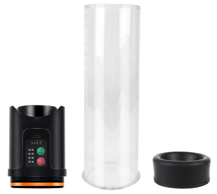 Pompe pour le pénis mesurant 19 cm de longueur et 5.5 cm de diamètre.Cylindre gradué et système de vide d'air facile.Avec deux manchons en silicone (20 et 30 mm) pour faire étanchéité à la base du sexe. Recharge en USB.