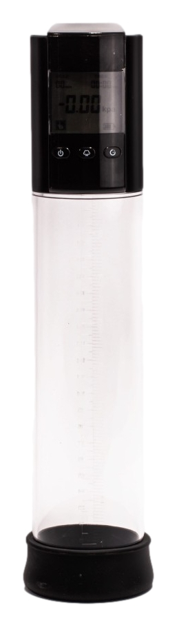 Pompe à pénis avec un cylindre gradué de 24 cm de longueur.Largeur intérieure de 6 cm.Avec un écran LCD pour visualiser la pression.Avec un anneau pénien fourni.Manchon en silicone/TPE pour faire l'étanchéité.