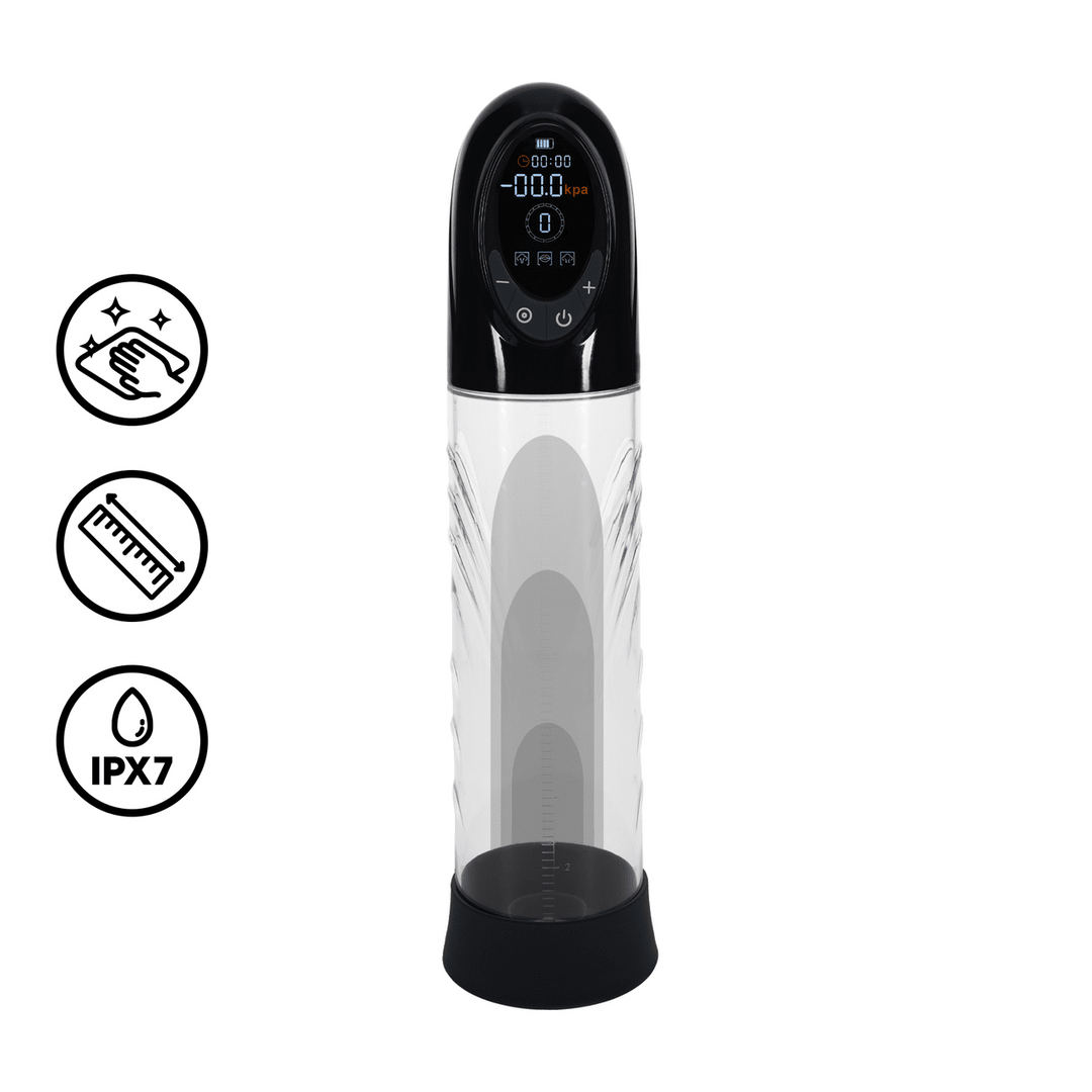 Caractéristiques :Longueur totale 32 cmLongueur insérable 21 cmDiamètre intérieur 6 cmManchons de 20 mm, 26 mm et 32 mm d'ouvertureCockrings de 27 mm, 30 mm et 33 mm de diamètre.Poids 320 grammesAutonomie 120 minTemps de charge 210 minNiveau sonore < 60dB4 vitesses d'aspiration9 modes de succionBatterie Lithium - recharge en USBÉtanche à l'eau (IPX7 - pas d'immersion).Précautions d'utilisation :utiliser un lubrifiant à base d'eaunettoyer le cylindre avant et après chaque utilisationne pas utiliser plus de 20 minutes par session.s'assurer que la batterie est chargée entièrement avant de l'utiliserla conserver dans un endroit propre, sec et à l'abri de la chaleur.