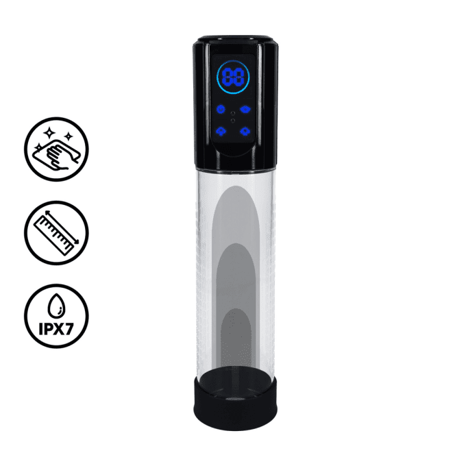 Caractéristiques :Longueur totale 30 cmLongueur insérable 20 cmDiamètre intérieur 6 cmManchons de 20 mm, 26 mm d'ouverture (souples)Autonomie 120 minTemps de charge 210 minNiveau sonore < 60dB4 modes d'aspirationBatterie Lithium - recharge en USBÉtanche à l'eau (IPX7 - pas d'immersion)Matières : Plastique ABS, Polycarbonate, Silicone.Précautions d'utilisation :utiliser un lubrifiant à base d'eaunettoyer le cylindre avant et après chaque utilisationne pas utiliser plus de 20 minutes par session.s'assurer que la batterie est chargée entièrement avant de l'utiliserla conserver dans un endroit propre, sec et à l'abri de la chaleur.