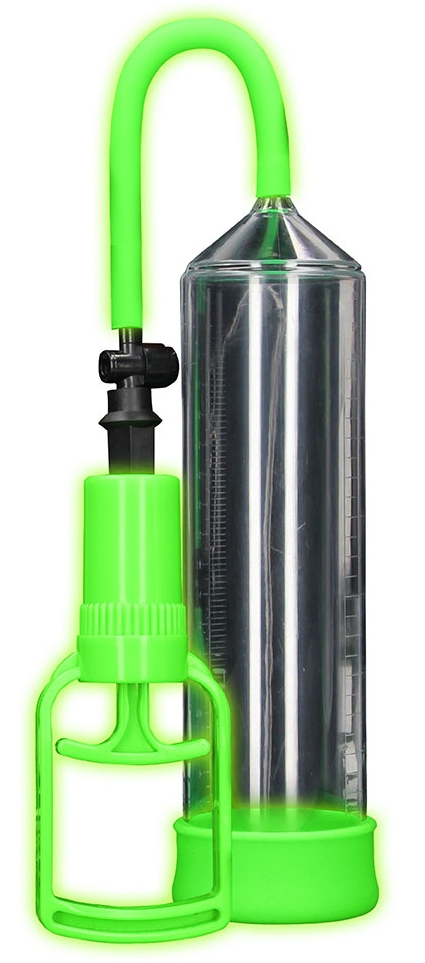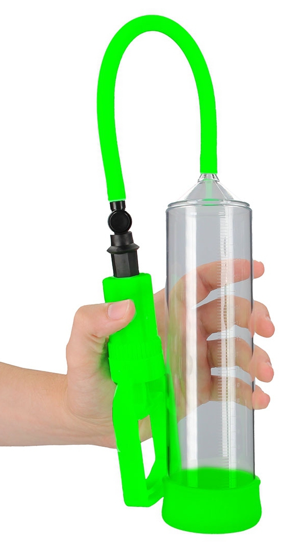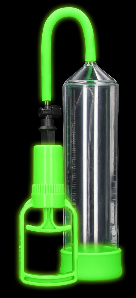 La pompe à pénis phosphorescente Glow Comfort est idéale pour gonfler le sexe et lui donne plus de volume.Le tube transparent est gradué et mesure 20cm de longueur et 5.5cm de largeur. L'embout, la poignée et le tuyau brillent dans le noir. Le tube est en