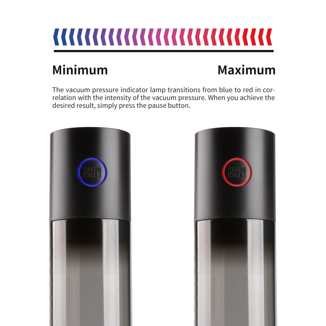 Longueur intérieure de 20 cm et diamètre intérieur de 6 cm.Avec un vide d'air automatique et une remise à zéro rapide.Le cylindre est gradué. Avec deux embouts de 26 et 32 mm de diamètre (en silicone). Recharge USB.