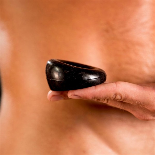 60 mm de large, 23 à 29 mm de diamètre. Serrant relativement peu la base du pénis, il fait toutefois bien remonter les testicules. Très arrondi, très brillant, il est autant pensé pour le plaisir esthétique que pour ses garanties de frissons plus charnels. Un ring qui ne demande qu?à se montrer et à être vu ! Il est composé de la plus haute qualité de TPE.