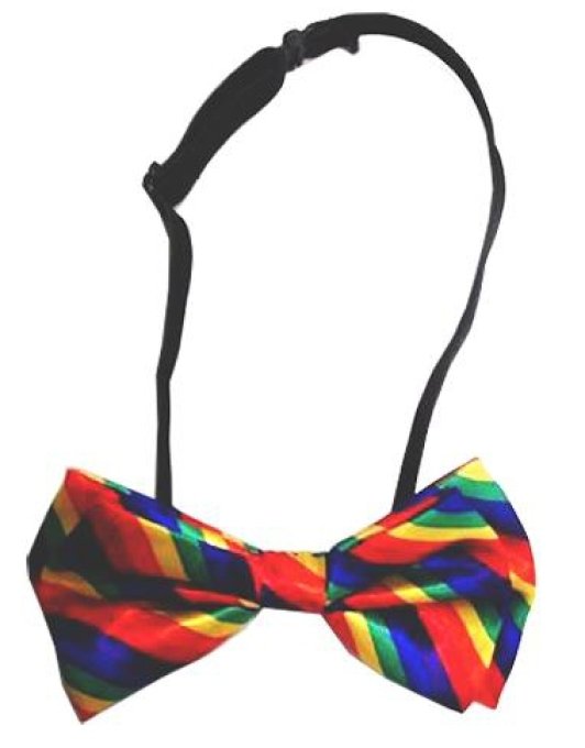 Noeud papillon avec les Rainbow.La fixation autour du cou se fait avec un ruban tissu et une attache plastique. Dimensions : 12 x 6cm